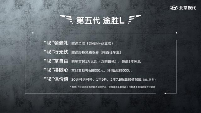 同时,消费者在购买第五代途胜L时还能享受到赠送全险和首任车主终身免费保养,以及3年免息,最高8000元的二手车置换补贴等购车优惠,可见北京现代的诚意之足。各方面产品力都很优秀的第五代途胜L,能否再创当年的辉煌?咱们拭目以待。