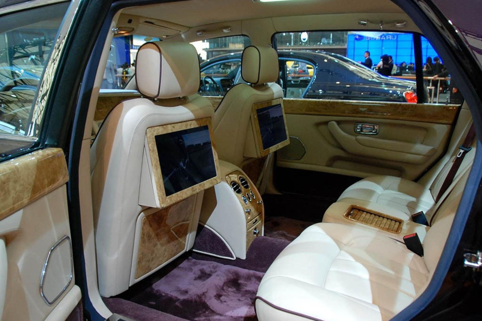 宾利慕尚 6.8T EIC特别定制版的后排配备了Apple的信息娱乐系统,此外,后排还安装了两个电动折叠餐桌,每张餐桌均安装有iPad和Apple蓝牙键盘,乘客可以处理工作或回复邮件。顶部位置还安装了下拉式显示器,可播放视频和电视节目。据悉,这些功能均是通过宾利工匠们耗费170多个小时打造的。