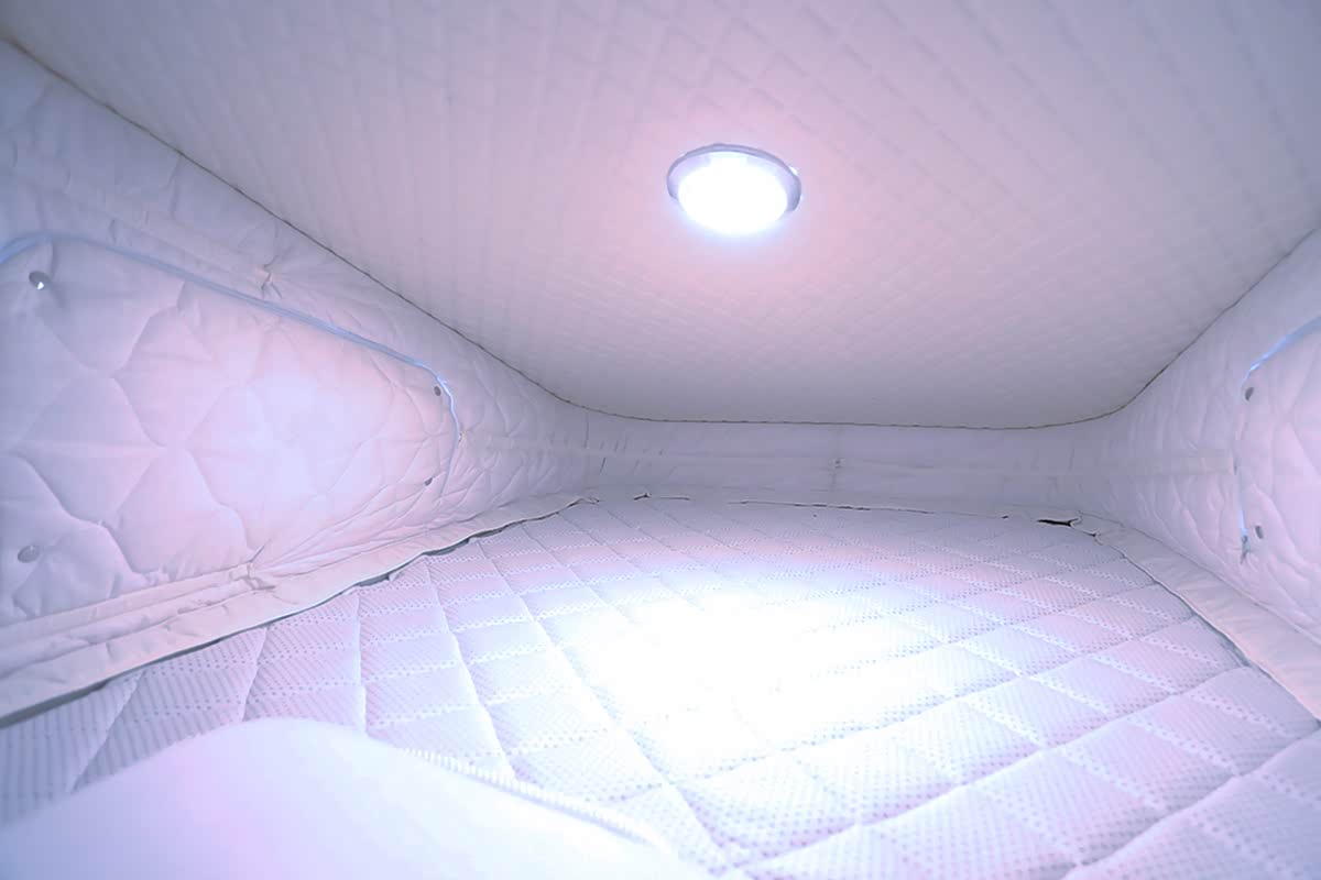 车顶可电动升起,可以提供一张2.2×1.2(米)的床铺。