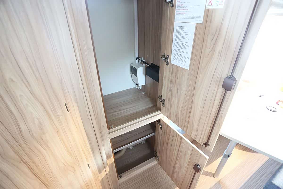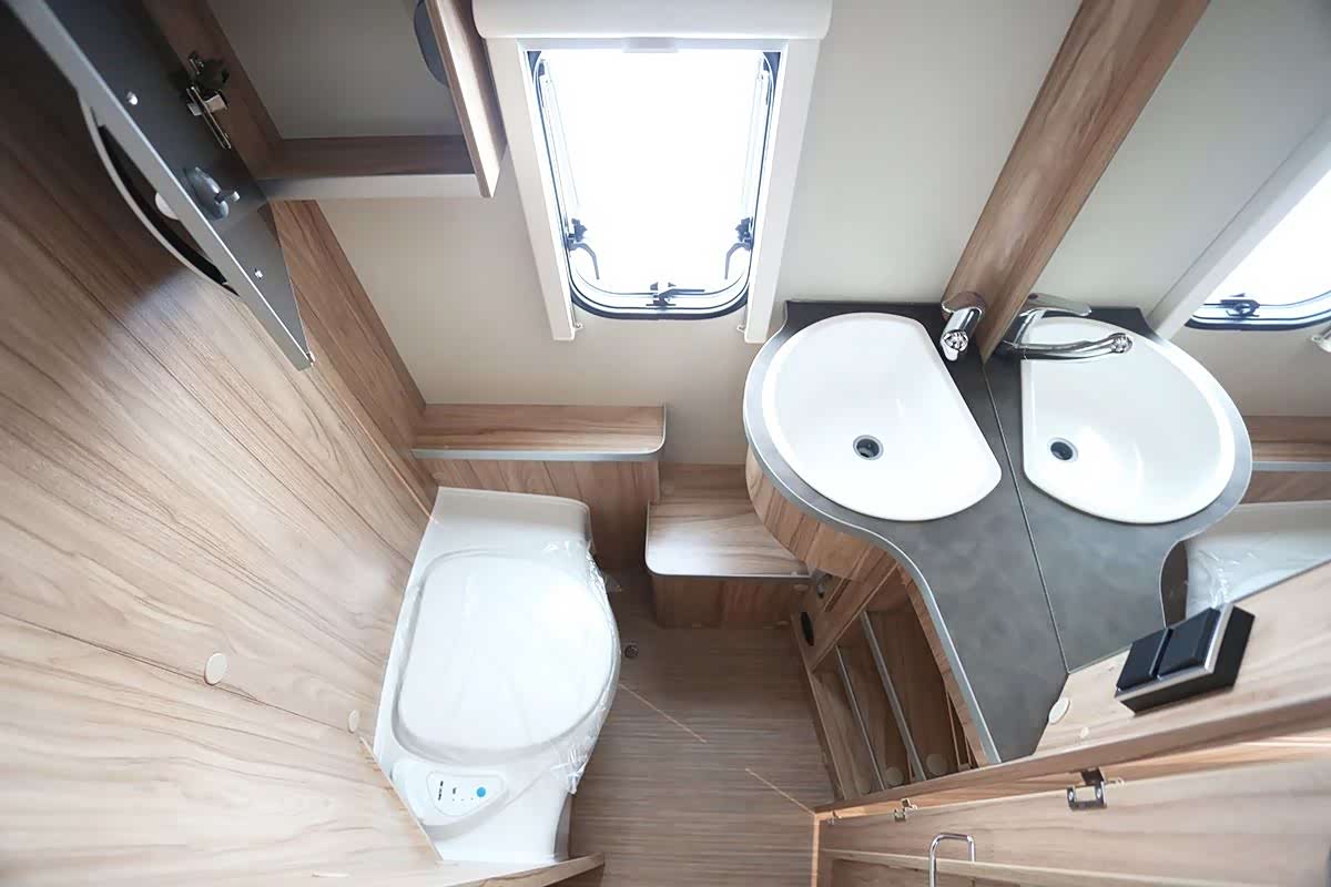 卫生间位于车尾床外侧,内部配备的是赛特福德房车坐便器,在一些国内房车上也可以看到这款普及度较高的产品,黑水箱容积为18升,净水箱容积45升。车内支持淋浴,热水器为5升。最后,这款艾瑞巴飞凌425拖挂房车的国内报价为39.8万。