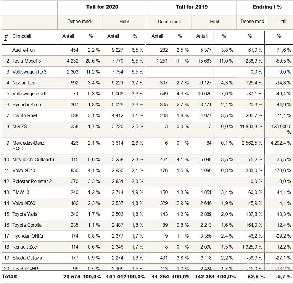 由于2021年将有更多的新款电动车上市,挪威电动车协会(Norsk Elbilforening)预测,2021年的电动车市占将达到65%。