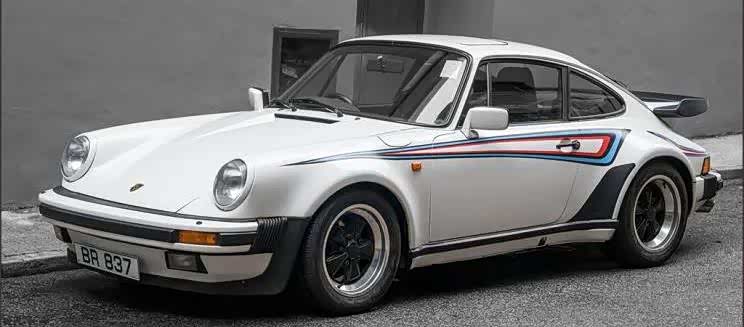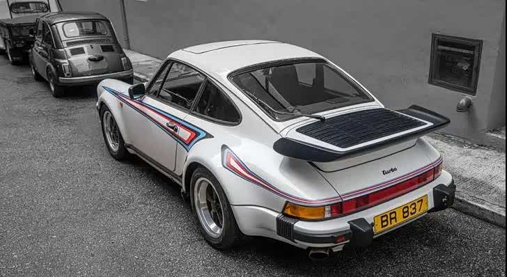 最后要提及的,便是Magnus Walker梦寐以求的白色马天尼911 Turbo。它是一款拥有马天尼涂装的930车型,搭载强悍的3.3升六缸水平对置涡轮增压发动机,在当时就可以输出高达300马力的强劲动力。