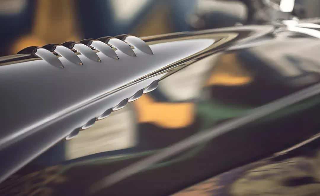 这辆车的外观钣金,除了车门之外都做了各种工艺的加工。去掉了挂放车牌的凹槽以及中网凹槽,为此定制了全新的扰流板以及前保险杠。并且由保时捷修复专家Rod Emery专门制作了冲压到前翼子板上的“百叶窗”。整车经过反复打磨,没有零件,没有柳钉,展现出一种毫无接缝的模组化外形。