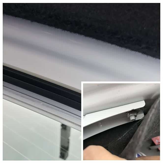 为了验证我的判断,我打开了后备箱检查内部情况,发现后尾盖的固定螺丝是拆过的,螺母边缘有一圈双向受力的拆卸拧动痕迹,而且后尾盖的内侧边缘胶线的做工也是非常的粗糙,上面还存在飞漆和色差,而原厂的配件胶线是非常规整的,根据这些表现,现在可以百分百判断后尾盖更换了。