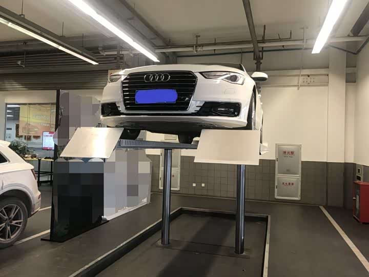 内饰没什么问题,接下来我们就要看底盘了。这台车是4S店的官方认证二手车,在店里就可以直接上架看底盘,还是挺方便,而且举升机挺高级,想起胖虎刚出道时候的地沟,不禁感叹这世界变化快呀!