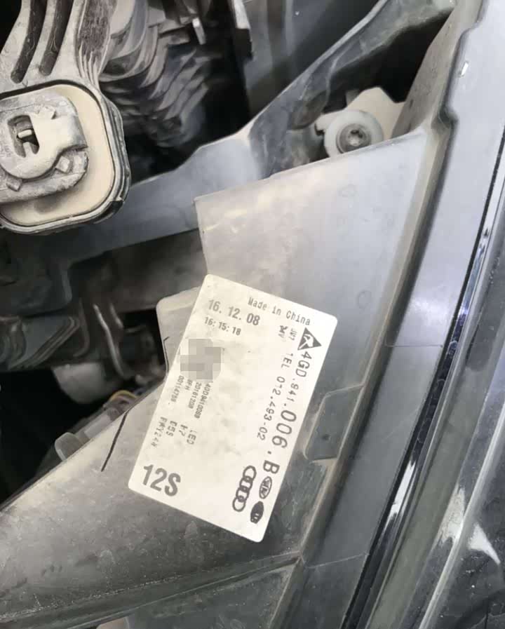 两个大灯也是原车的,制造日期均与原车相吻合,也没有拆卸修复的痕迹。大灯是车头很脆弱的配件,如果前部要是出过较大事故,大灯通常保不住,而且奥迪的一个大灯换下来价钱可是不少。