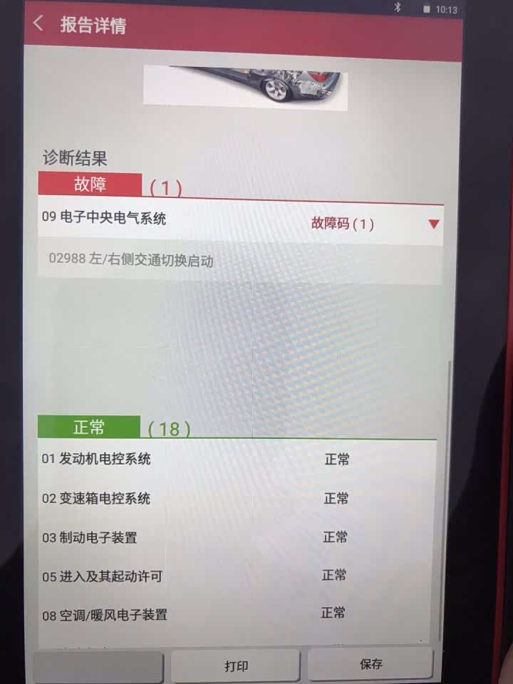 OBD电脑检测在中央电器系统仅存在一个电阻故障,对车辆的行驶安全没有任何的影响,后期清除故障码即可。
