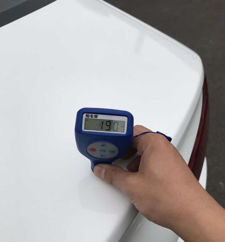 肉眼观察后尾盖是做过喷漆修复的,但是车漆厚度过于偏低,远远达不到原厂工艺标准。胖虎初步判断后尾盖有过更换,因为新更换的外观覆盖件缺少了附着电泳层这一道程序,所以车漆厚度会比原车低一些。