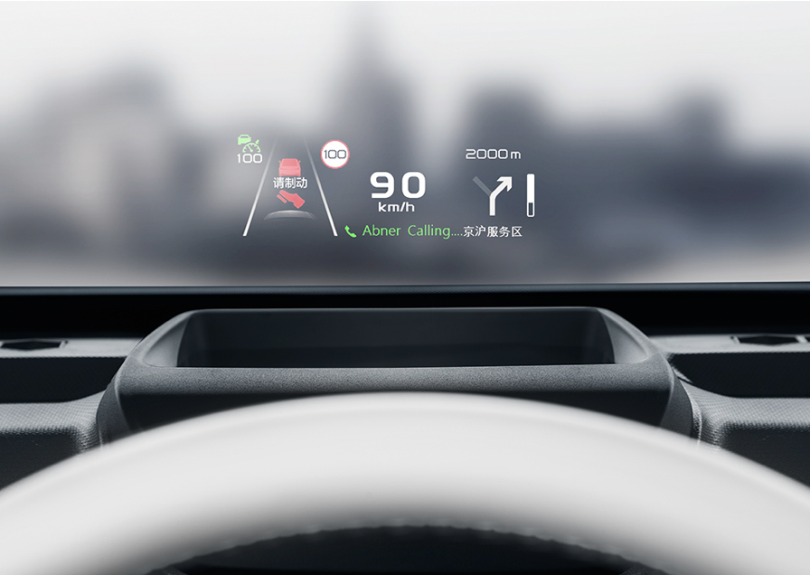 再来看智能驾驶科技,在同级车型的360°全景影像之外,几何A Pro还引入了底盘透视功能,在开车的时候,这套系统可以依托超宽视角无缝拼接鸟瞰图像,进而帮助我们直观且安全地停泊车辆。而在开车过程中,HUD投影式数字平显系统就显得非常实用了,这套系统可以用投影的形式,将速度信息、蓝牙电话、转向灯等重要信息,投射到前风挡玻璃上,所以即便不低头看仪表盘,我们也可以对车辆的各种信息了如指掌,大大提升了驾驶的安全性。