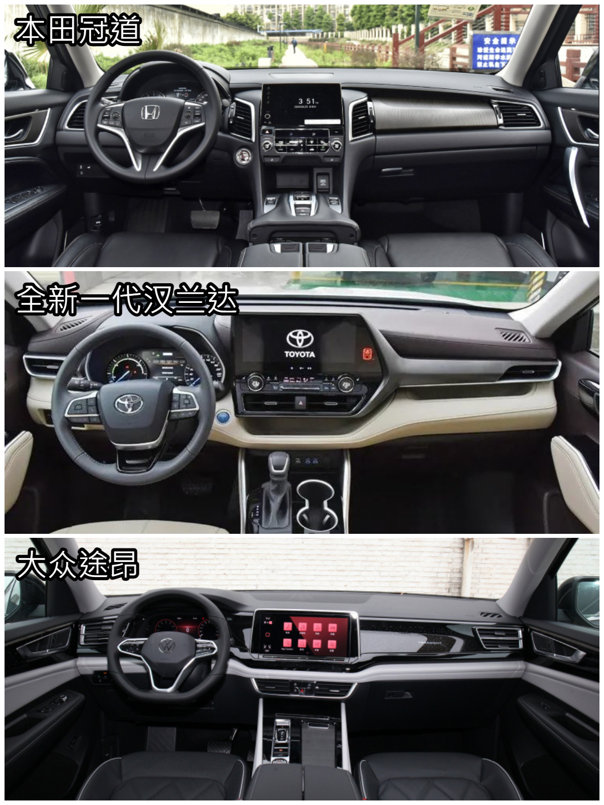 在MQB EVO平台的加持下,新款途昂内饰变得更为简洁,全部实体按键直接转变为触控中控屏内操作。而全新一代汉兰达则同样将中控屏做大,保留了部分实用的实体按键,但整体内饰设计及质感还是保留了原来较为经典的风格,本田冠道亦然。对比之下,途昂在内饰部分上更胜一筹。