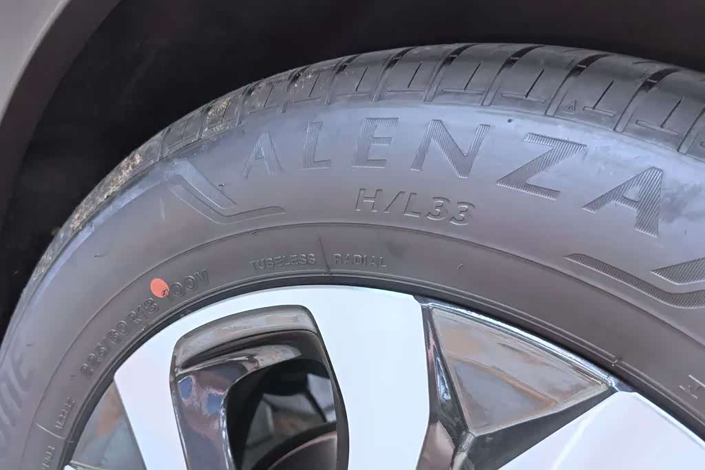 这辆试驾车配备的是普利司通遨然者(Alenza)H/L 33轮胎,这款轮胎很有意思,毕竟H/L 33是普利司通动力侠(DUELER)的花纹型号,即表示轮胎花纹左右对称,安装时不分左右内外,并且可以任意换位。