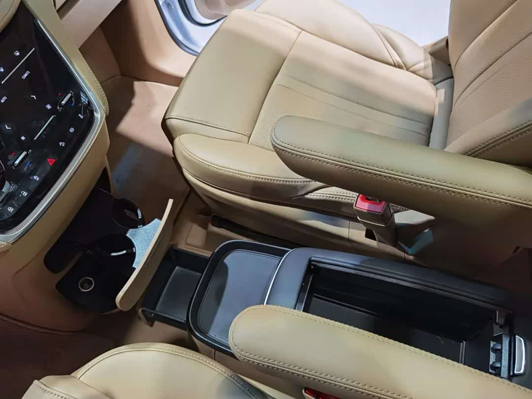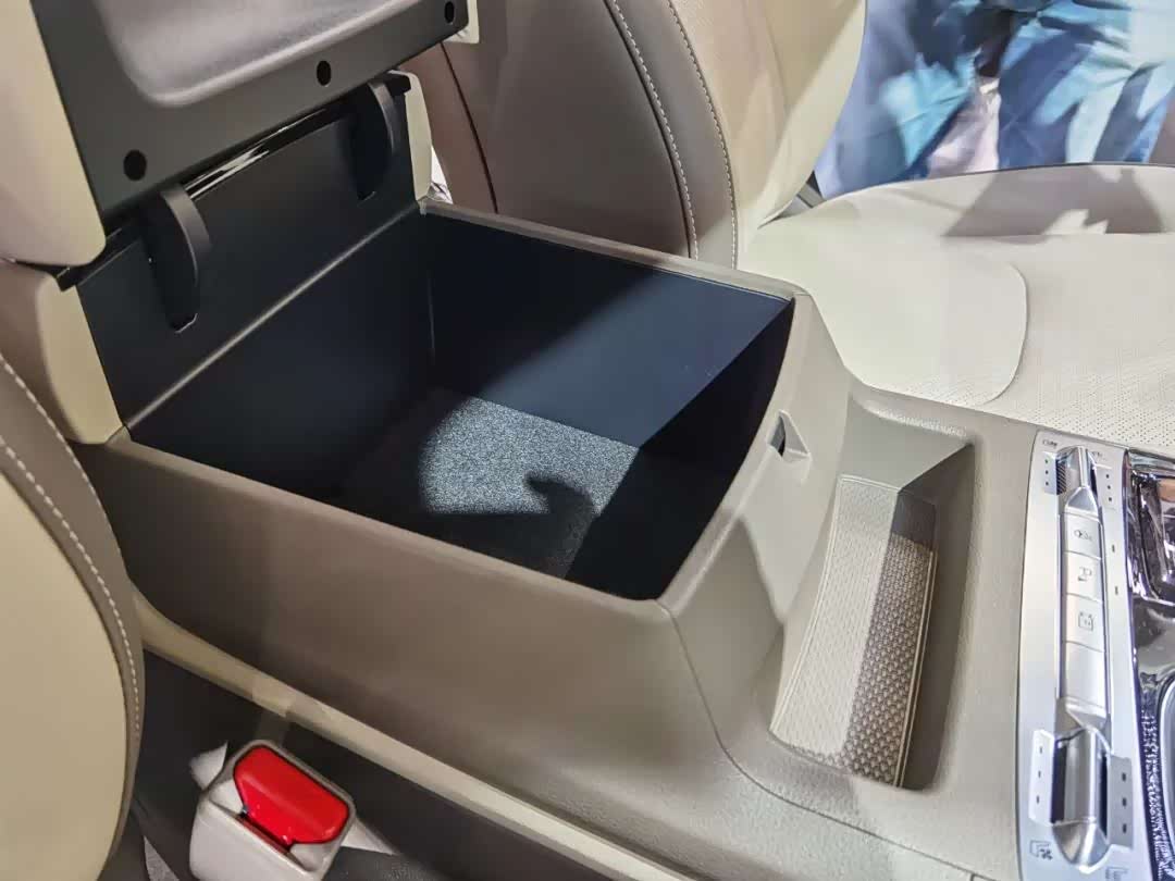 GL8这块的表现和奥德赛有一拼,中控台下方是一个弹出式的杯架,下边是一个弹出式的小储物格。高配车型的储物箱容积也不小,前边有个小平台,还有一个弹出式的储物槽,同时前座中间的空位也能放东西。