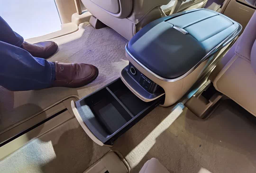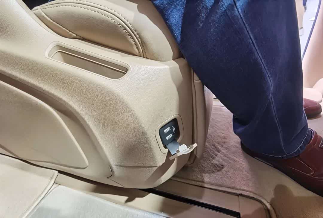 而GL8第二排的USB接口,在左侧座椅的下方,这让我想到了高铁座椅下边的电源插口。