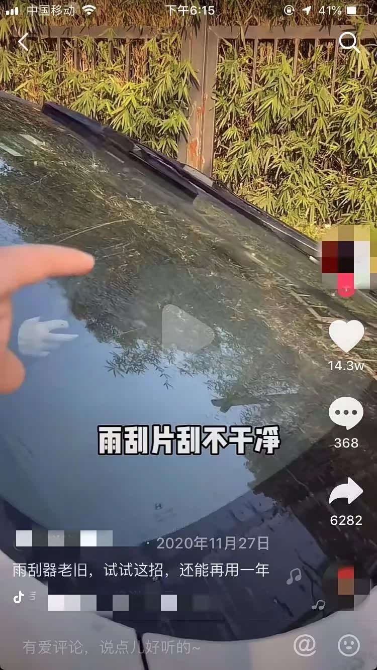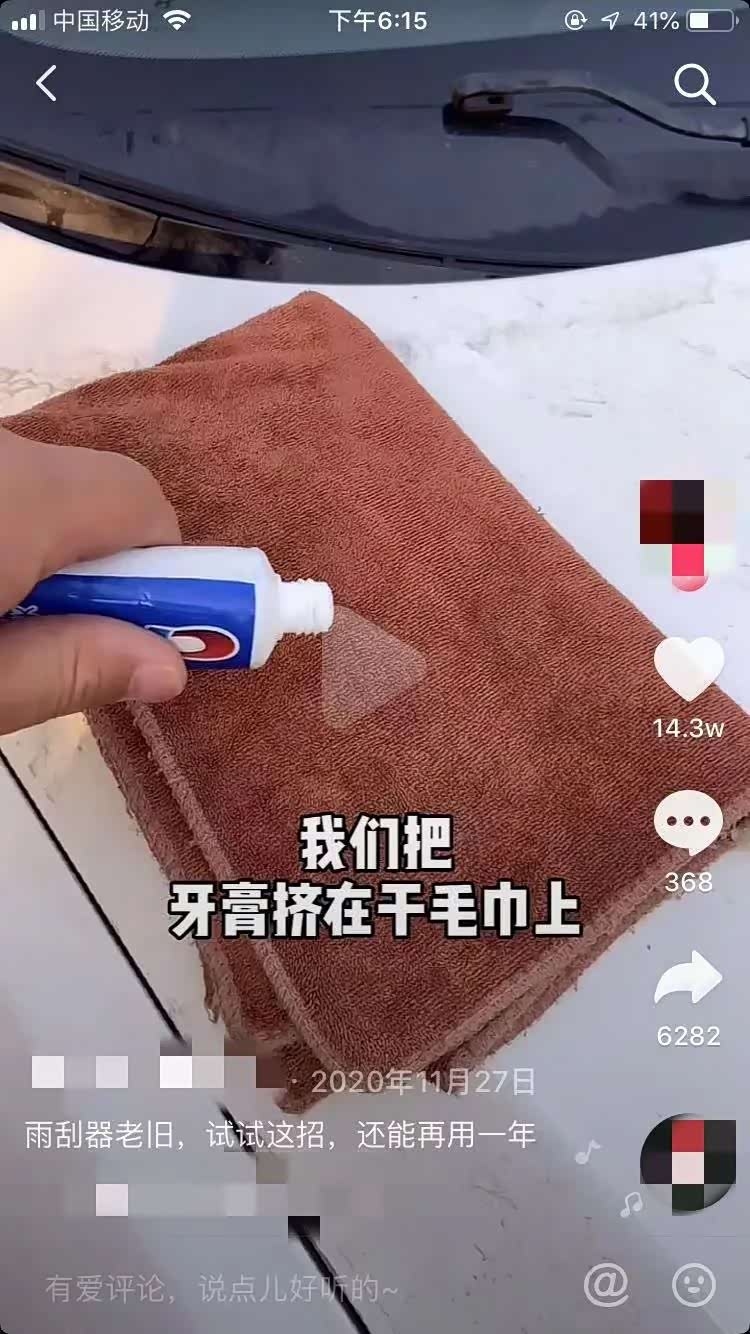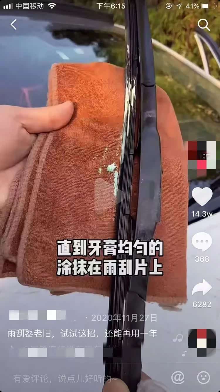 我在上一期的文章里面拆穿过“牙膏能去除车身划痕”的谎言。说实话当时听到牙膏能去划痕的时候,我也是震惊了。不过现在让我更震惊的来了,在抖音的世界里,牙膏不但能去除划痕,还能翻新雨刷呢!