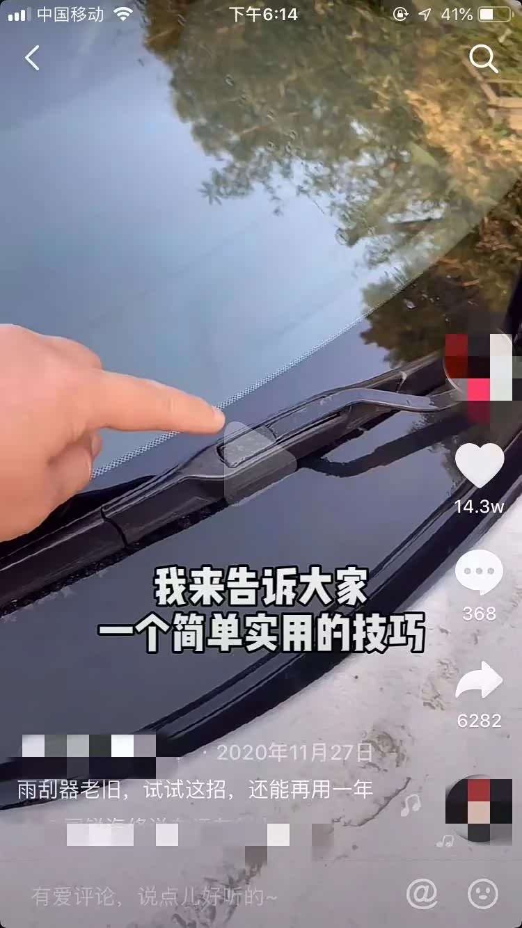 相信不少人看见这条视频的时候肯定都得疯狂收藏,你看看那点赞量,14.3W。这就是业外人士的收藏秘籍,业内人士的搞笑段子。如果雨刷器这么容易就被修复了,那生产雨刷器的厂家岂不是早就倒闭了,所以这根本就是个笑话嘛~