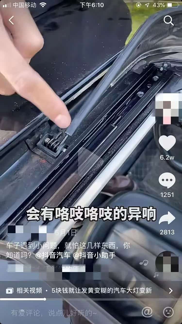 我们的终极目标是解决雨刷器刮不干净的问题,那得找到背后的原因才行呀,其实在抖音上还真的有一些作者给做了解读。