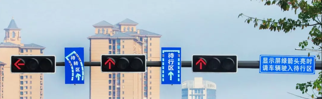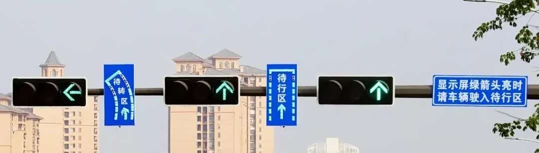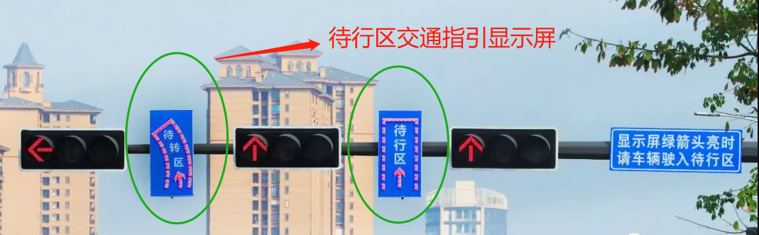 通过设置待行指示屏和指示牌,可以利用其他方向交通流放行的时间间隙,引导车辆提前进入待转区和待行区等待放行,达到缩短车辆通过路口的时间和距离、提高路口的通行效率和通行能力的目的。