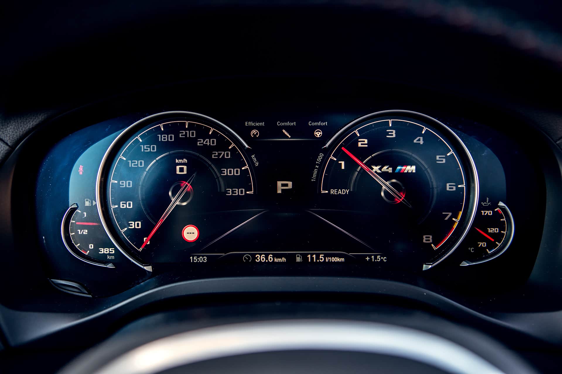 当然,以上情况有些接近于极端,如果你没有受到那悦耳的声浪蛊惑去冲破自己的心里防线,在体验足够的推背感后,复合式刹车盘的表现会让你对这款车增加信任感。随后,在正常时速下入弯,能够感受到这辆高重心、高自重的运动型多功能轿跑车拥有与M4跑车般相同的正常侧倾,同时当轮胎远没有到达抓地力的边缘时,X4 M Competition就能够让你明显感受到来自内侧车轮的扭矩支持,外加精准的转向调校和硬朗的悬架支撑,会让驾驶者产生很强的错觉感——这不就是一辆M4嘛!作为运动型多功能轿跑车,面对如此优秀的驾驭质感,对于前文中所提到的加速差距,有谁会在乎呢?