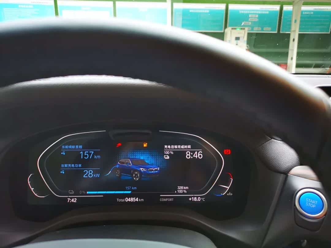 创新纯电动BMW iX3的续航里程值得赞许,当充电50%的时候根据当前的能耗计算出还能跑出的里程,当电能只有30%时,它的实际行驶里程依然略大于表显里程,适量的备用余电不会把车辆丢在距离充电站的最后一段距离。