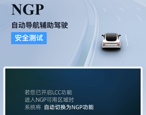 由于很多时候用户并不清楚NGP已经覆盖了哪些路段,也不清楚什么时候增加覆盖了哪些路段,加上在实际驾驶时并不一定能时刻注意到液晶仪表上的绿色方向盘图标,所以我希望系统能加入车辆在进入或驶出NGP覆盖路段时进行的语音提醒,并在液晶液表上用文字显示“NGP开启”、“LCC开启”或“ACC开启”等巡航状态。