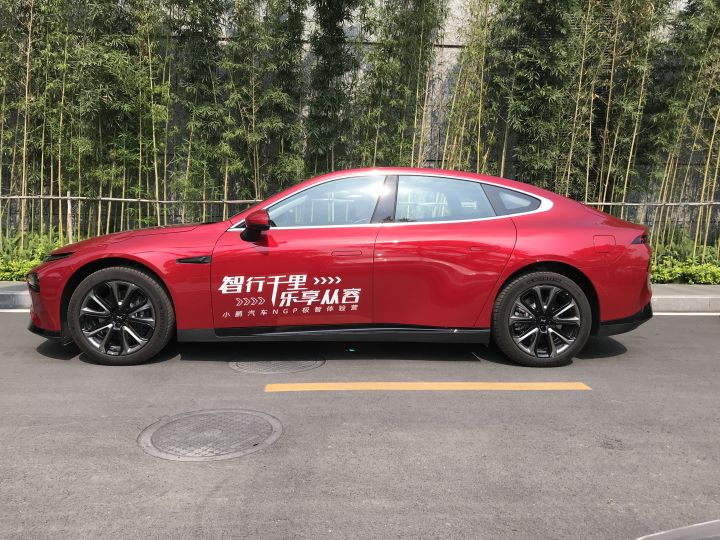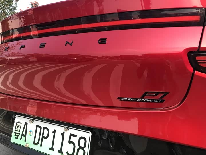 由车头和车尾的黑色的小鹏徽标、P7 Performance标识以及带有NGP功能表明,这辆试驾车为指导价34.99万的P7四驱高性能智尊版,并选装了日曜红车漆和订阅了XPILOT 3.0软件及升级服务。