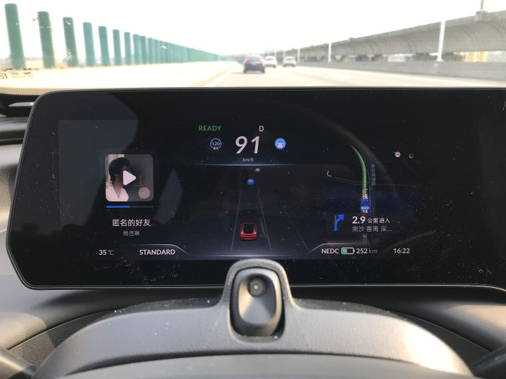 NGP还加入了夜间超车提醒功能,在夜间超车前会自动闪三下大灯提示前车,该功能也十分贴合现实中的驾驶场景。可惜此次试车为日间,还未有机会体验到该功能。