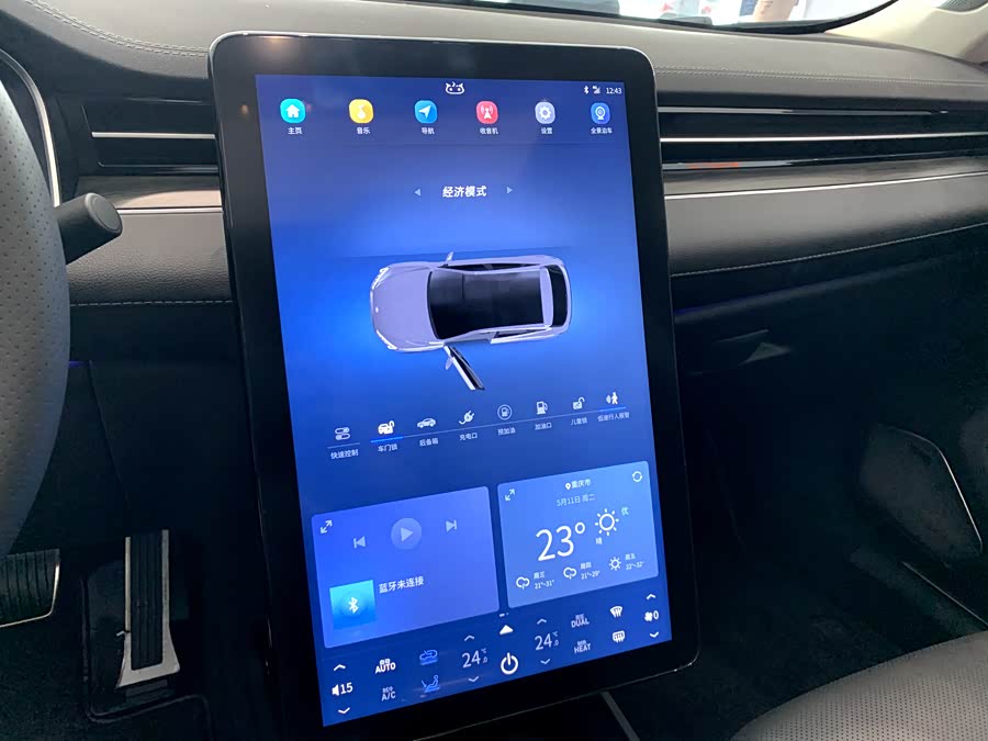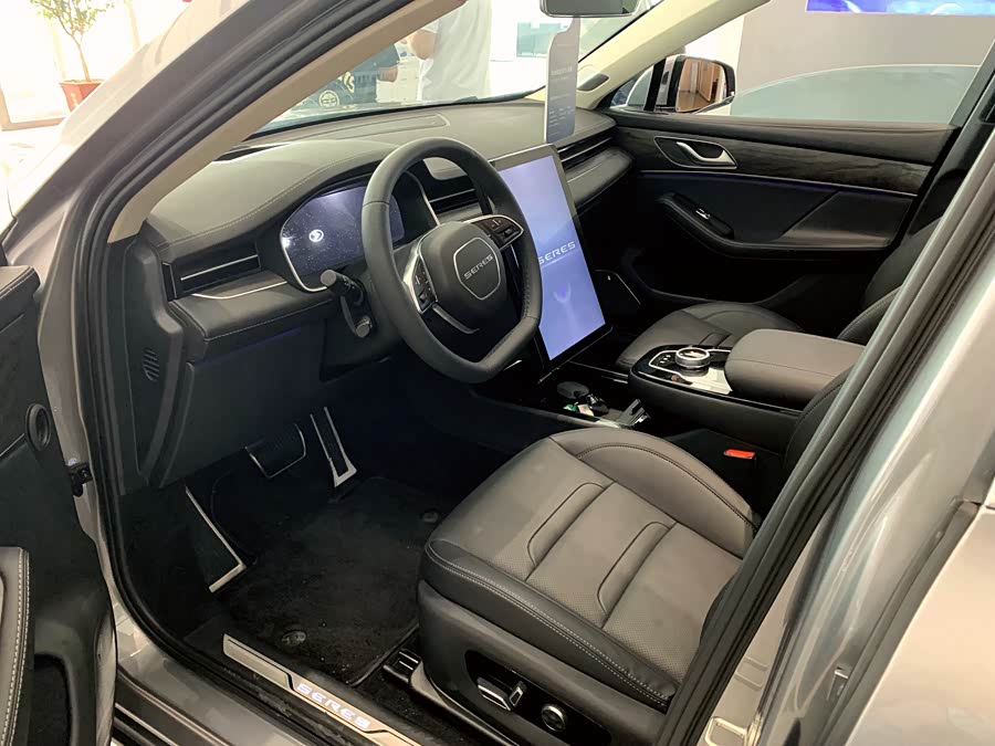 新车采用华为提供的HUAWEI HiCar全场景智能互联系统,这一系统基于华为鸿蒙HarmonyOS开发,目前已经与多家车企合作,可提供人-车-家全场景智慧互联,支持在手机和车内中控大屏间随时随地切换如导航、音乐等应用,上车前手机里听的歌可以无缝在车上接着播,下车后地图自动切换到手机,继续从停车场导航到目的地,相当于直接把华为手机上的移动应用生态复制到了车机上。不过据赛力斯店员说,目前新车还没有搭载这套系统,只是在老款车型的基础上由华为重新做了UI,要等到6月份才会升级到鸿蒙系统。
