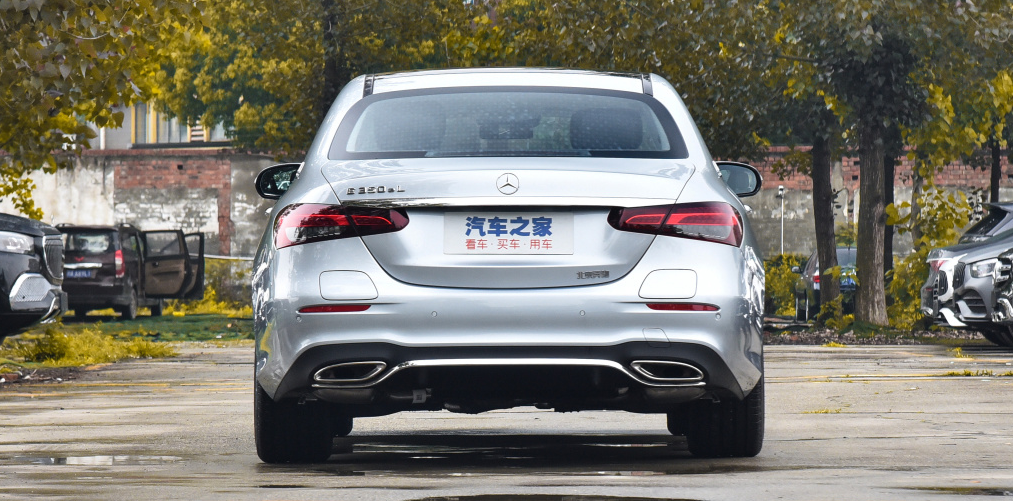 奔驰E级采用了细长的倒三角尾灯,中间通过银色饰条进行连接,并且在两侧尾灯下方都设置了充电接口,左侧为快充接口,右侧为家用充电接口。