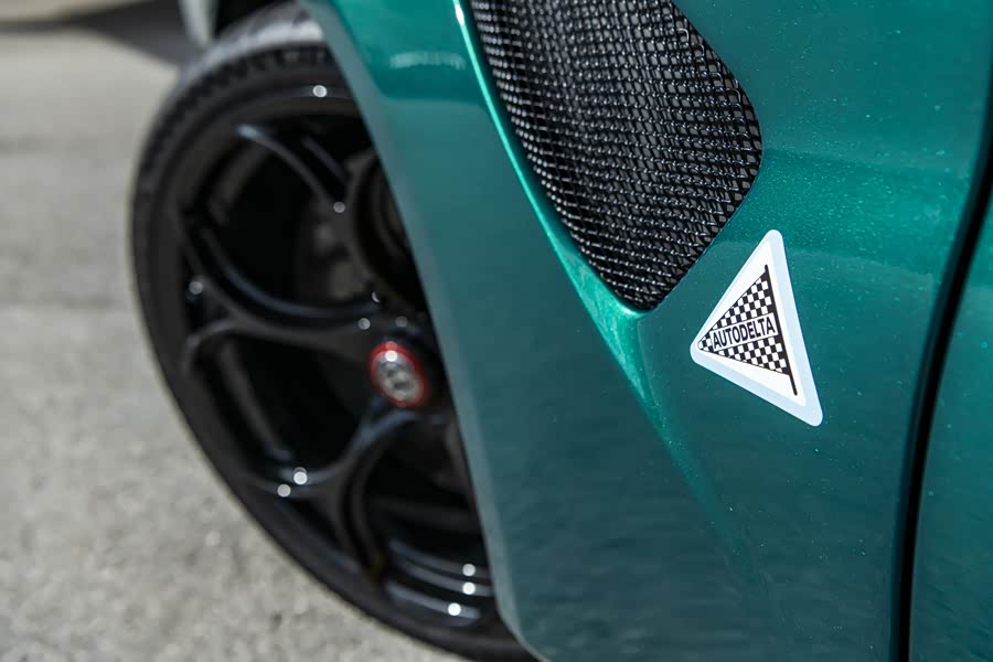 侧面,新车加入了碳纤维材质的侧裙,后翼子板还新增了超出车身的碳纤维轮眉,这一切都只是为了更好的空气动力学效果,更好的操控。此外,Giulia GTAm车型在侧面和后部采用了赛用的聚碳酸酯树脂材料制成的黑色窗户,将轻量化做到极致。为了匹配强劲的动力,新车还配备了米其林Pilot Sport Cup 2轮胎。