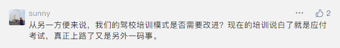 sunny:从另一方便来说,我们的驾校培训模式是否需要改进?现在的培训说白了就是应付考试,真正上路了又是另外一码事。