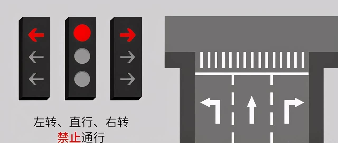 图一:左转、直行、右转 同时为红灯时 各个方向均禁止通行