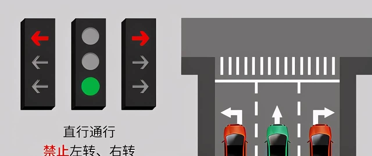 图六:左右转均为红灯 直行绿灯 禁止左转和右转 只能直行