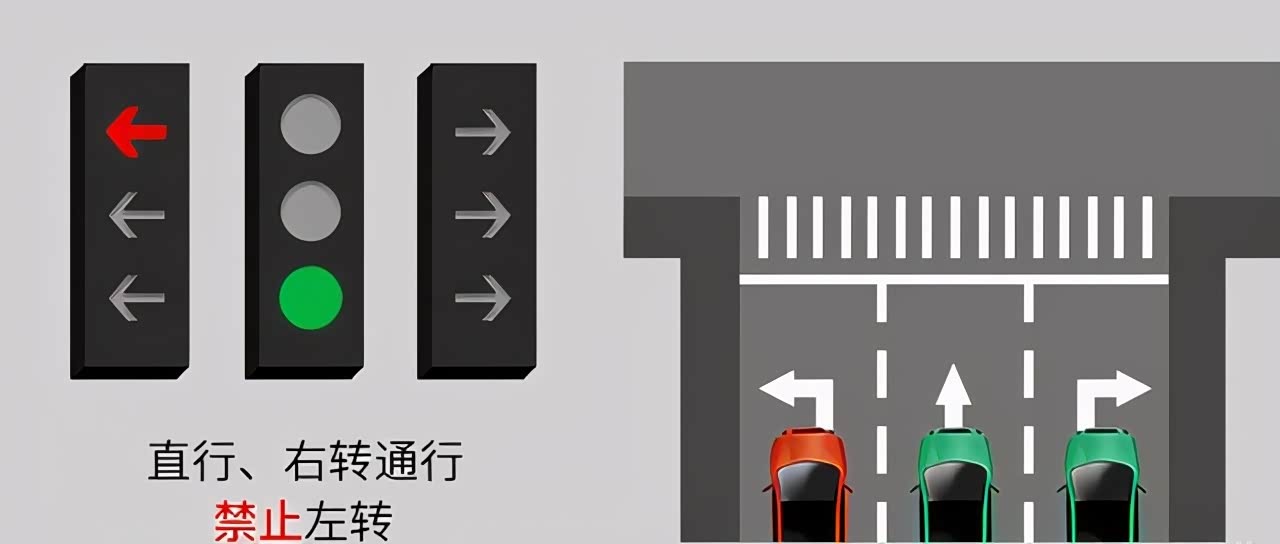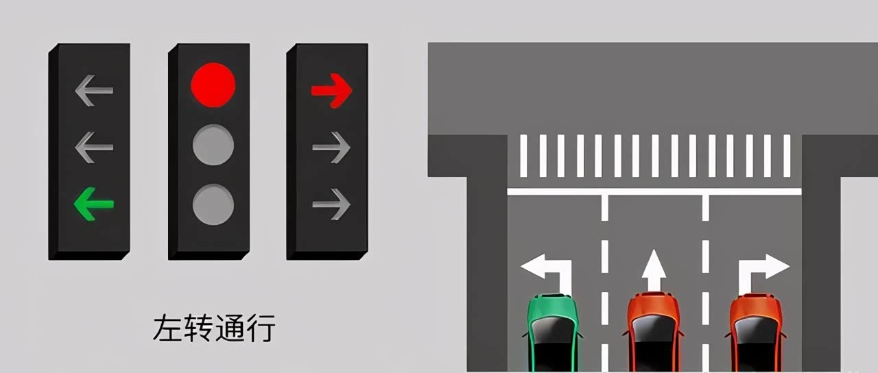 图三:左转绿灯 直行红灯 右转红灯时 只有左转可同行