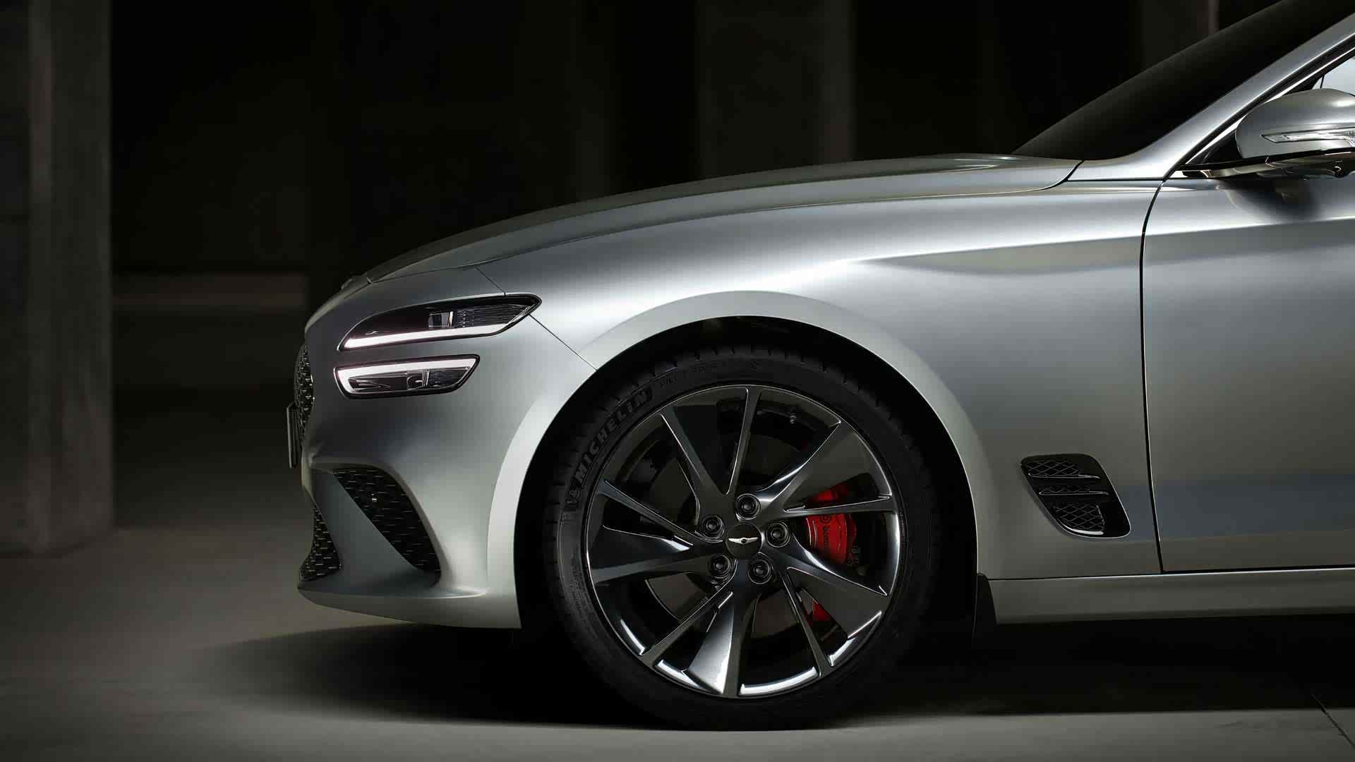 除此之外,其他一切元素均与G70保持一致,例如Brembo刹车卡钳、独特造型轮毂和翼子板下方通风口。