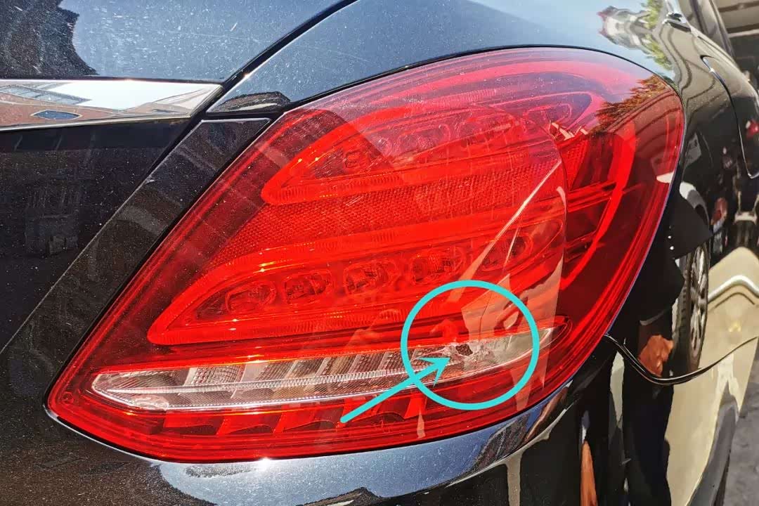 第二天的上午,我带着家人准备前往Hello Kitty乐园,结果上车之前,我发现自己车子的右侧后尾灯有一块破损,于是我赶忙拍照和拍视频,做个记录,接着立马去找保安。