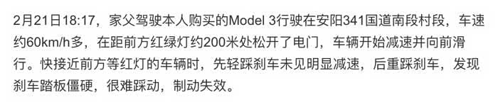 维权车主称「特斯拉刹车失灵」,导致自己父亲发生交通事故。特斯拉则通过公布并解读事故发生前1分钟的行车数据来说明自己的产品刹车并未失灵。值得注意的是,这份行车数据吸引了众多相关专业人士进行解读,希望可以搞清楚事情的真相,但特斯拉公布的数据并不完整,因此不仅难下定论,而且引发了大家的各种猜想。
