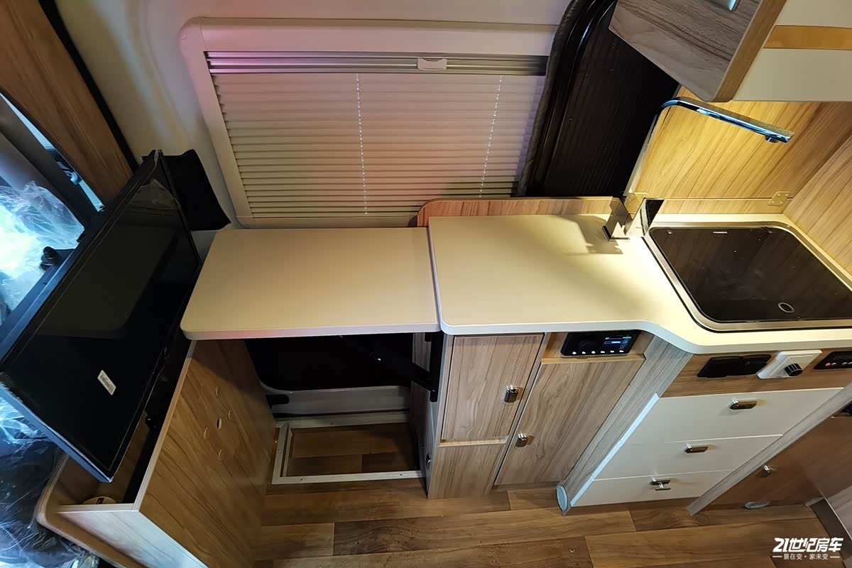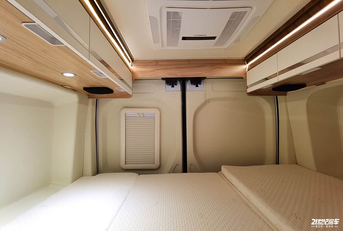 这款车是刚不久前美景美家房车发布的一款新车型,采用的是上汽跃进H300轻卡底盘打造,车身尺寸为5995×2350×3200(mm)。动力方面,搭载2.0T柴油发动机,最大功率110kW,最大扭矩375N.m,传动系统匹配6AMT速自动变速箱。车尾采用横置卧铺床尺寸为2200×1400(mm)。水路系统方面,净水箱容积为180升、灰水箱容积为80升。电路系统方面,600W太阳能电池板+太阳能控制器、500Ah锂电池及3kW充电逆变一体机。关于这款车的更多细节,稍后的文章会给大家介绍到。