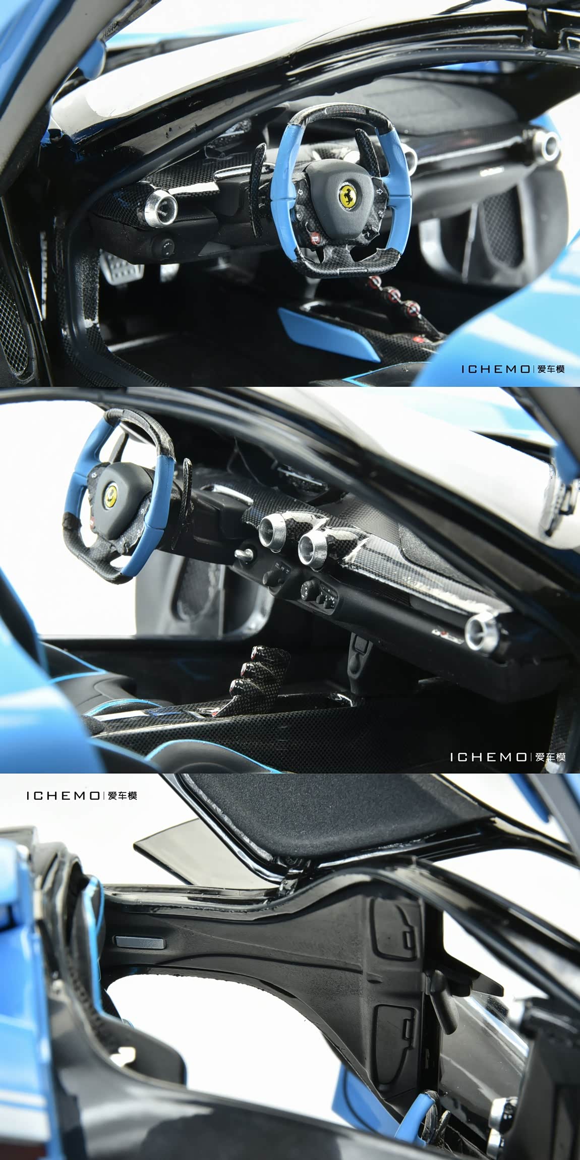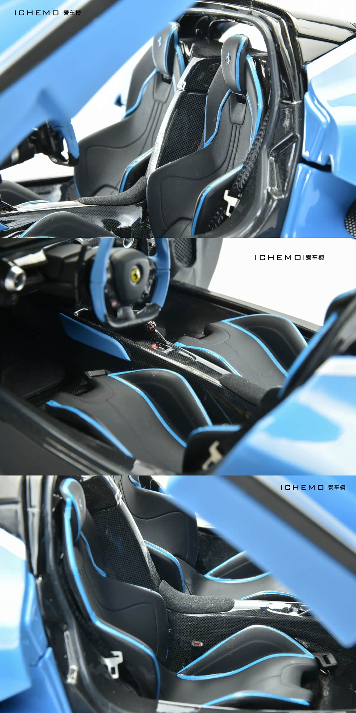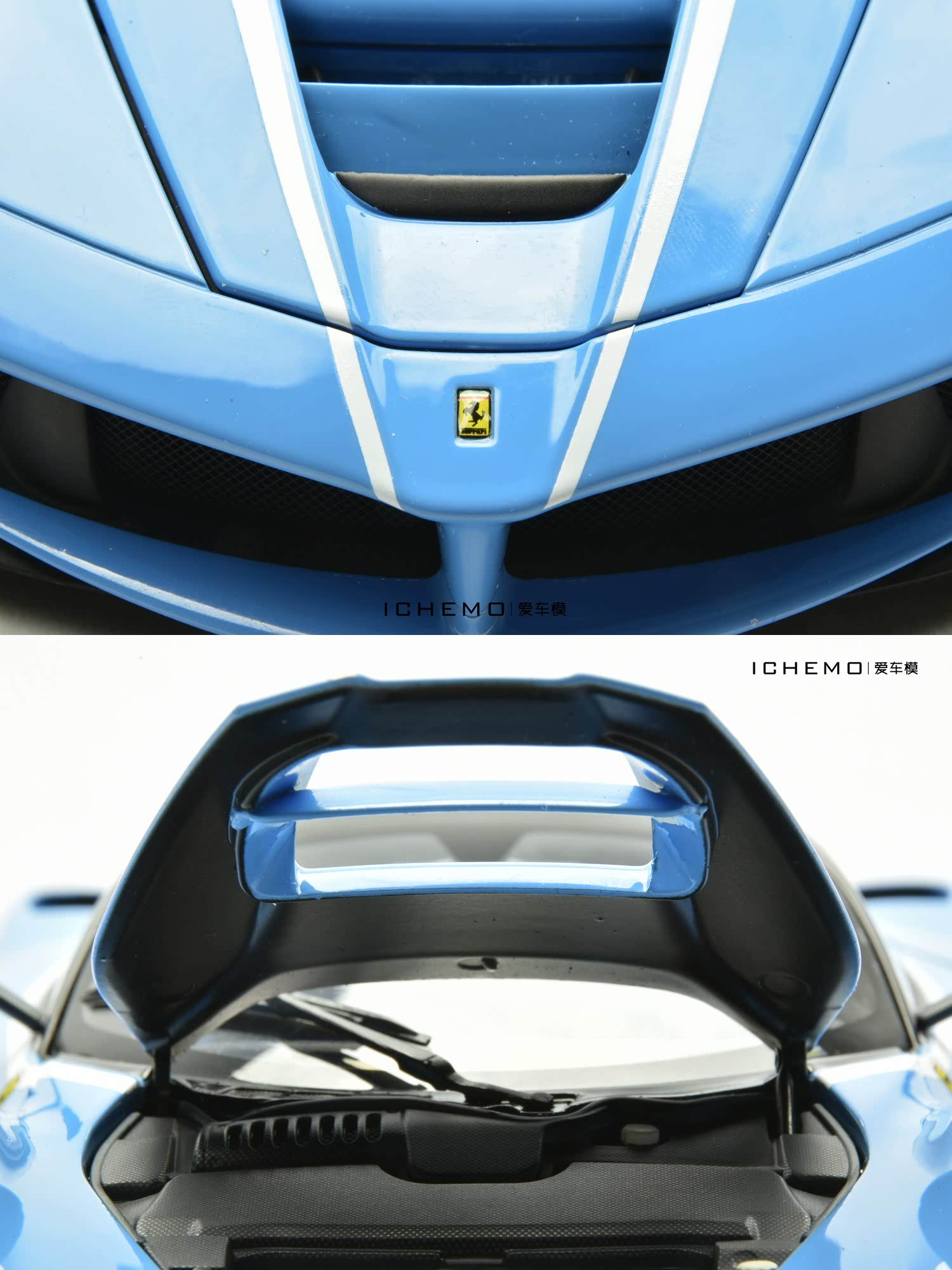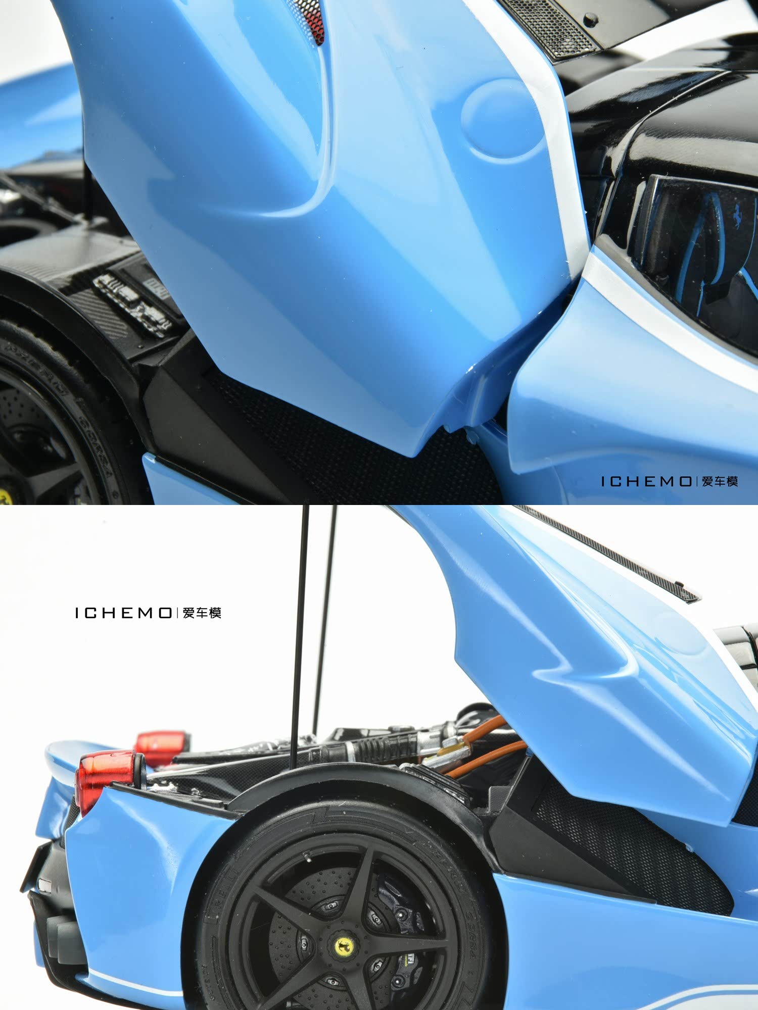 此番 BBR 订制款 1:18 合金全开 Ferrari LaFerrari 汽车模型采用 Baby Blue(白条纹)配色,其实车现在国内,全球唯一!海外亦有 Baby Blue 配色的 LaFerrari,但为消光色。