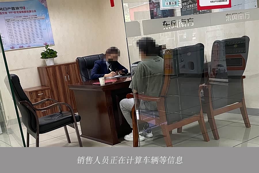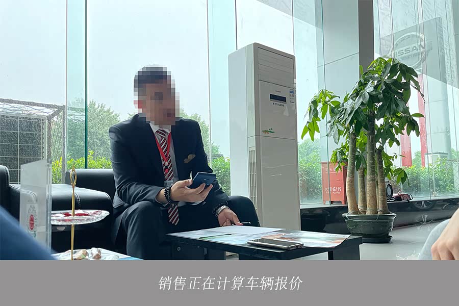 试驾结束后来到洽谈环节,该销售邀请笔者就坐,并记录了笔者的个人信息,紧接着该销售给笔者手写了一份详细的报价单,包括车辆的各种费用,并且一一向笔者进行了说明和解答,十分全面。但遗憾的是在整个洽谈环节该销售没有称呼过笔者的姓氏也没有询问是否需要饮品,主动服务意识较差。在与该销售的商谈中笔者了解到,轩逸车型目前该店有8000元的现金优惠,置换补贴和金融政策与上一家经销商类似,置换补贴同样是2000元,比上家经销商好的是不强制贷款金额,且分期手续费较上家经销商的便宜了500元。
