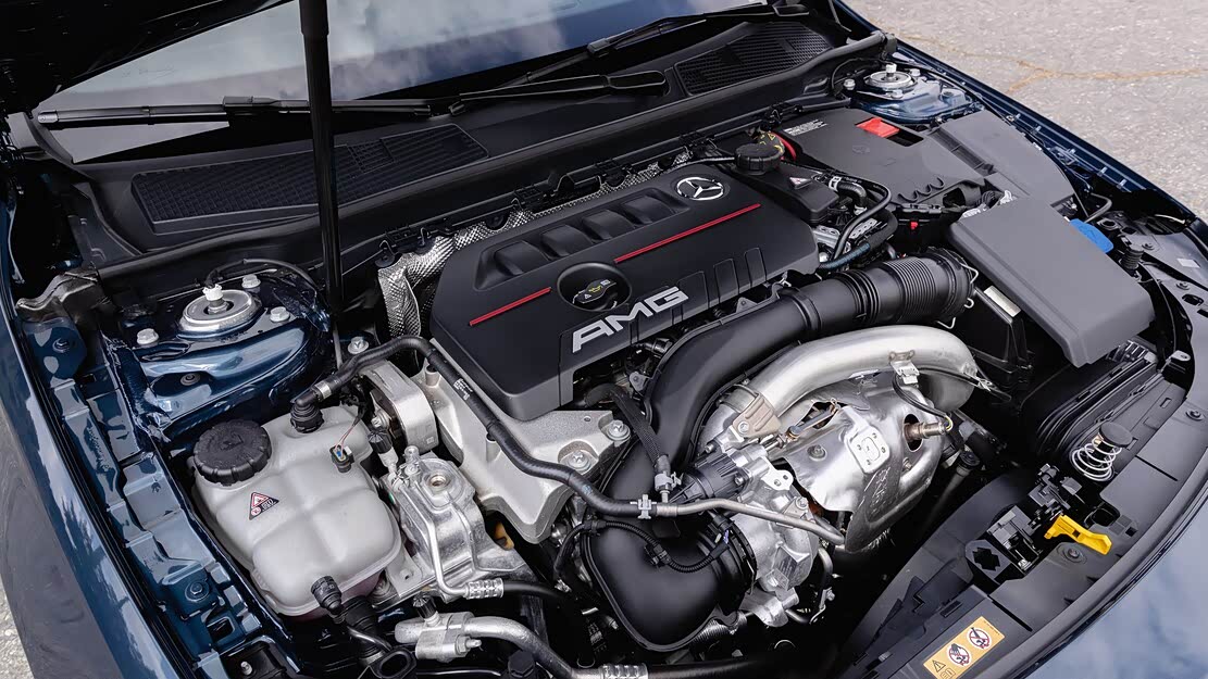 AMG A35 4Matic将普通A级车型中的188马力2.0升涡轮增压L4压榨升级换成AMG增强型发动机,可产生302马力和400牛米的扭矩,这在AMG版本车型中还有GLA和CLA35。匹配七速双离合器自动变速箱,搭配全轮驱动系统。AMG工程师优化了Benz DCT和4Matic系统,以充分调整车重比例的缺陷,其前轮重量占比61%,整车重1580公斤。