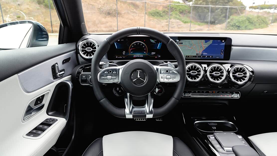 测试结果显示AMG A35只需要4.4秒内就完成了0-100公里/小时的加速,比奔驰官方给出的时间缩短了0.2秒。这个速度要比2020年的BMW M235i xDrive Gran Coupe(具有近乎相同的301马力,但比A35重约22.7公斤)快0.4秒。为了得到这个数据,AMG测试团队使用了A35的Race Start功能(竞技起步模式),在起跑前使发动机保持在3500rpm的转速,在起跑后进行激进的切换挡。