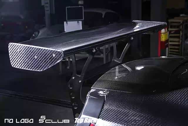 绝对不妥协的外观造型,连头灯也拆掉了,用碳纤维材料代替。