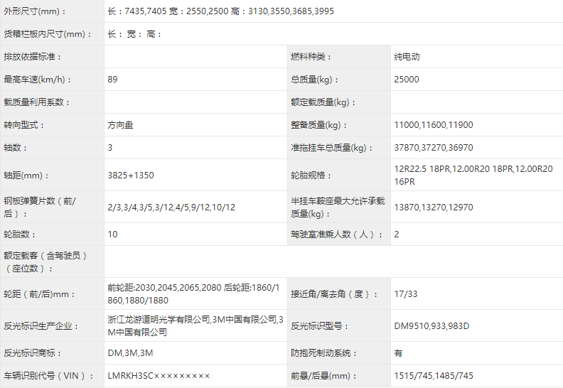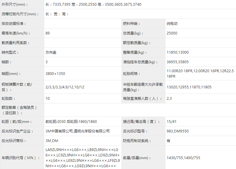 本期公告中,一款大运换电式纯电动牵引车终于登上公告,该车的车型号是CGC4250BEV1Z5,整备质量为11850、13000KG。