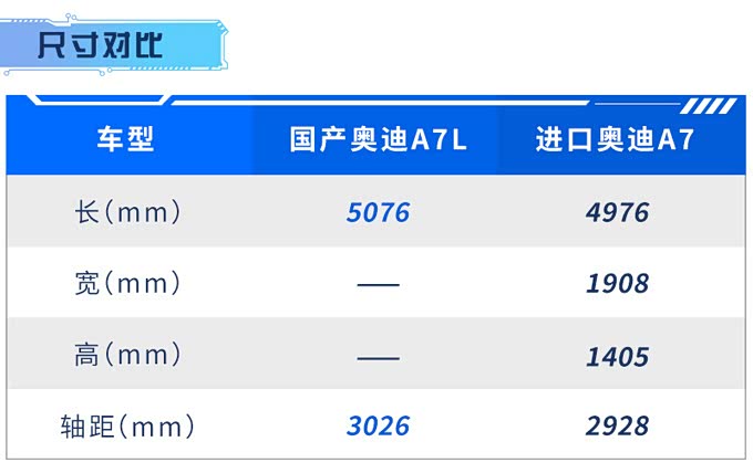 新车前脸采用了奥迪家族标志性的设计风格,配备了大尺寸六边形进气格栅,前灯组造型凌厉,侧面配备了无框车门。相较于奥迪A7,新车的尾部造型有较大调整,取消了掀背设计,后备厢门也因此改为传统的开启方式。车身尺寸方面,新车车长达到5076mm,轴距为3026mm,较进口奥迪A7有大幅提升,得益于车身尺寸的加长,奥迪A7L的后排空间也更为宽敞,大幅提升了后排乘客的乘坐体验。