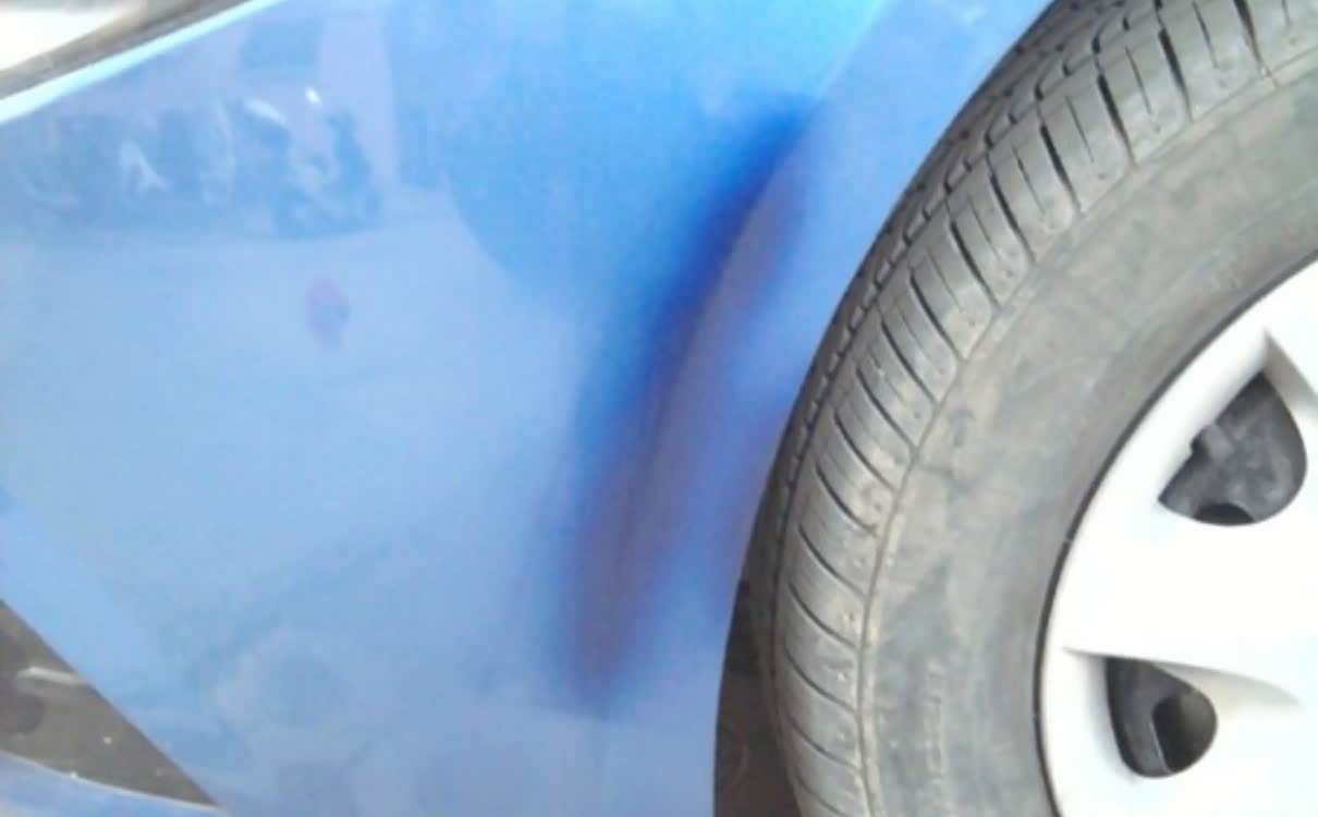这个车是我前两天修的一个车,在停车场车门被旁边的车子磕出个小坑,因为对方的车是边角直接磕上来的,油漆都被碰掉了。