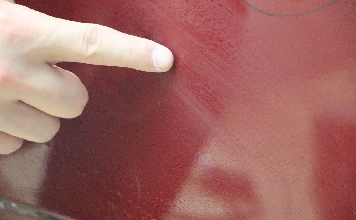 注意砂纸打磨过的地方油漆会泛白,需要抛光还原一遍。