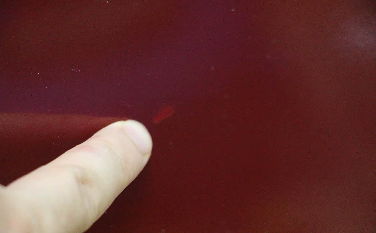 这个色卡是我自己做的,因为只看点漆笔上的图片还是不准确,这样点漆的时候就更直观了。通过颜色对比可以看出中国红113是最接近原车颜色的。