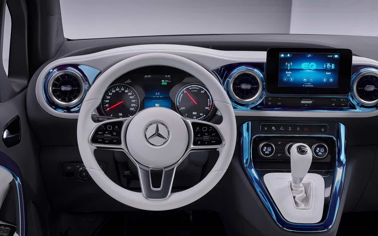 目前,奔驰未公布有关EQT概念车的具体信息,不过因为它采用了与与第三代雷诺Kangoo ZE相同的CMF-B平台,我们预测它将搭载相似的电池组和电机配置。
