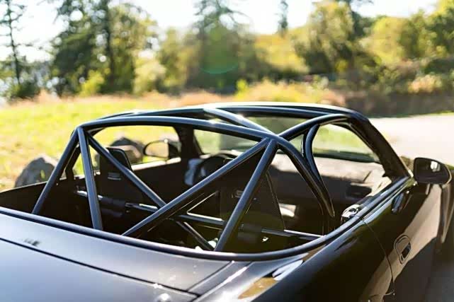 图:这台车采用了碳纤维防滚架,其重量必然非常轻,但相信价格也不便宜。笔者曾经在泰国见过人家用钛合金做防滚架,虽然十分好看,但是却很尴尬。因为大部分安装防滚架的车都主要是为了满足一些正规比赛中的赛例,但如果是正规比赛,它又会严格控制车重,车子轻了又当你是犯规,所以碳纤维防滚架与钛合金防滚架都很尴尬。不过如果出于只为了安全考虑和颜值,它们又的确有很大的存在价值。