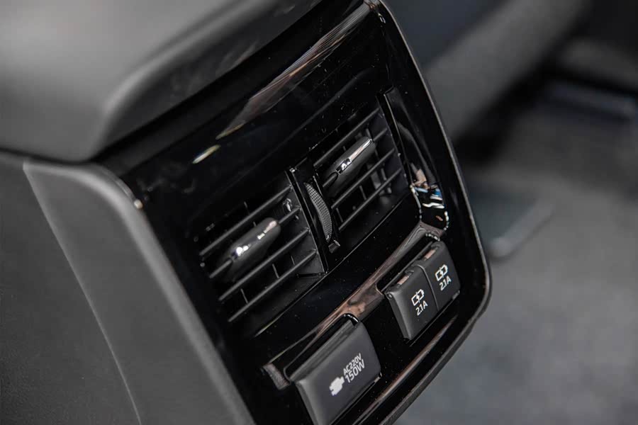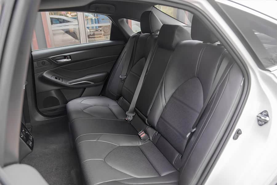 身高175cm的体验者将前排座椅调整至合适的驾驶坐姿后,坐进后排能够收获2拳腿部空间以及4指头部空间,而且横向空间充足,即便后排满载3人也不显拥挤。值得夸奖的是,丰田亚洲龙的后排座椅宽大厚实,座椅填充物十分柔软,较长的坐垫对于大腿的支撑也十分到位。此外,亚洲龙的后排中间座椅配备了头枕,后排中间地台隆起高度也在可接受范围之内,对于中间乘客较为友好;而后排出风口以及电源接口都是后排舒适性的加分项。